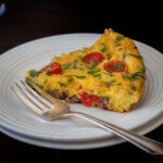 For this, thinly shredded or pre cooked small cubes would be best. You can find something like this in the frozen section of the grocery store. You can choose to have it as your “crust”. For instance, after meat is cooked through, remove it from the pan, and mix into egg mixture. Replace the meat with a layer of shredded potatoes and let sizzle until browning. Add egg mixture on top and continue with the recipe.